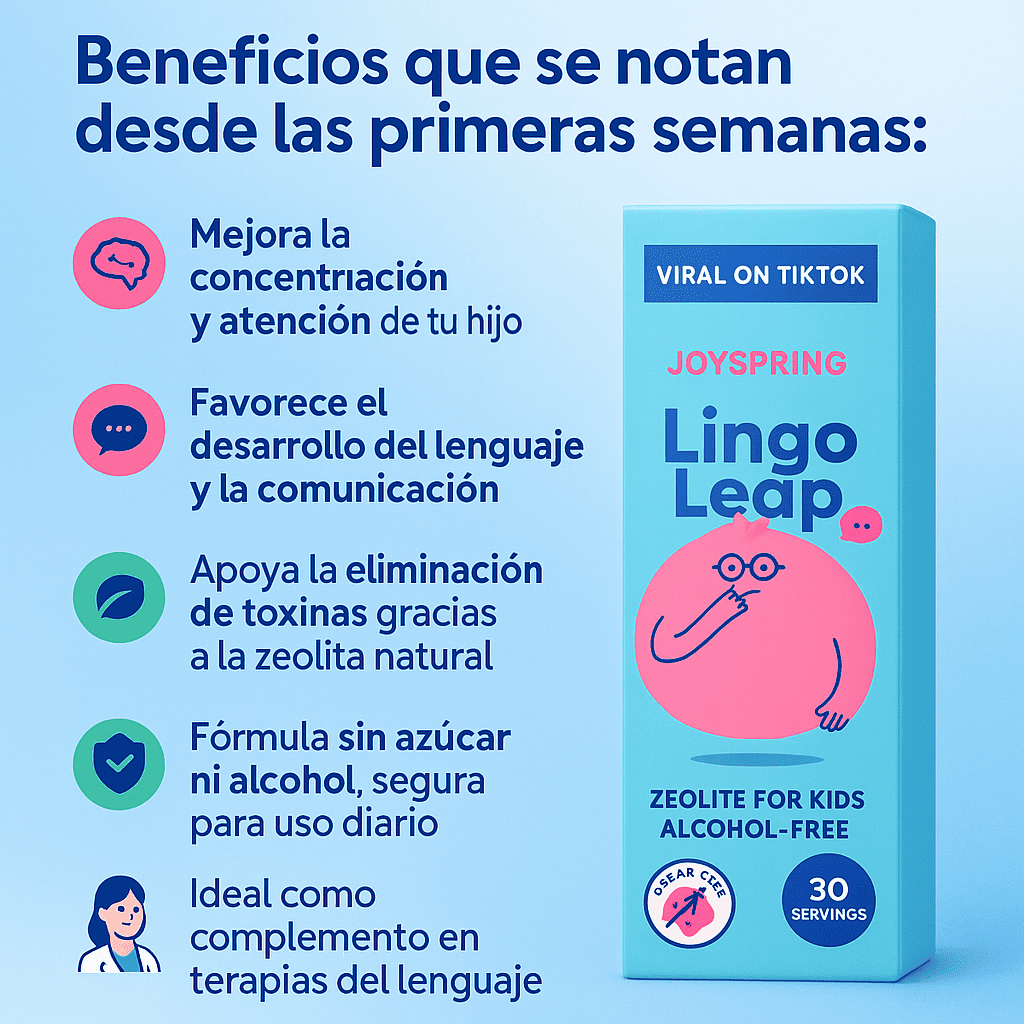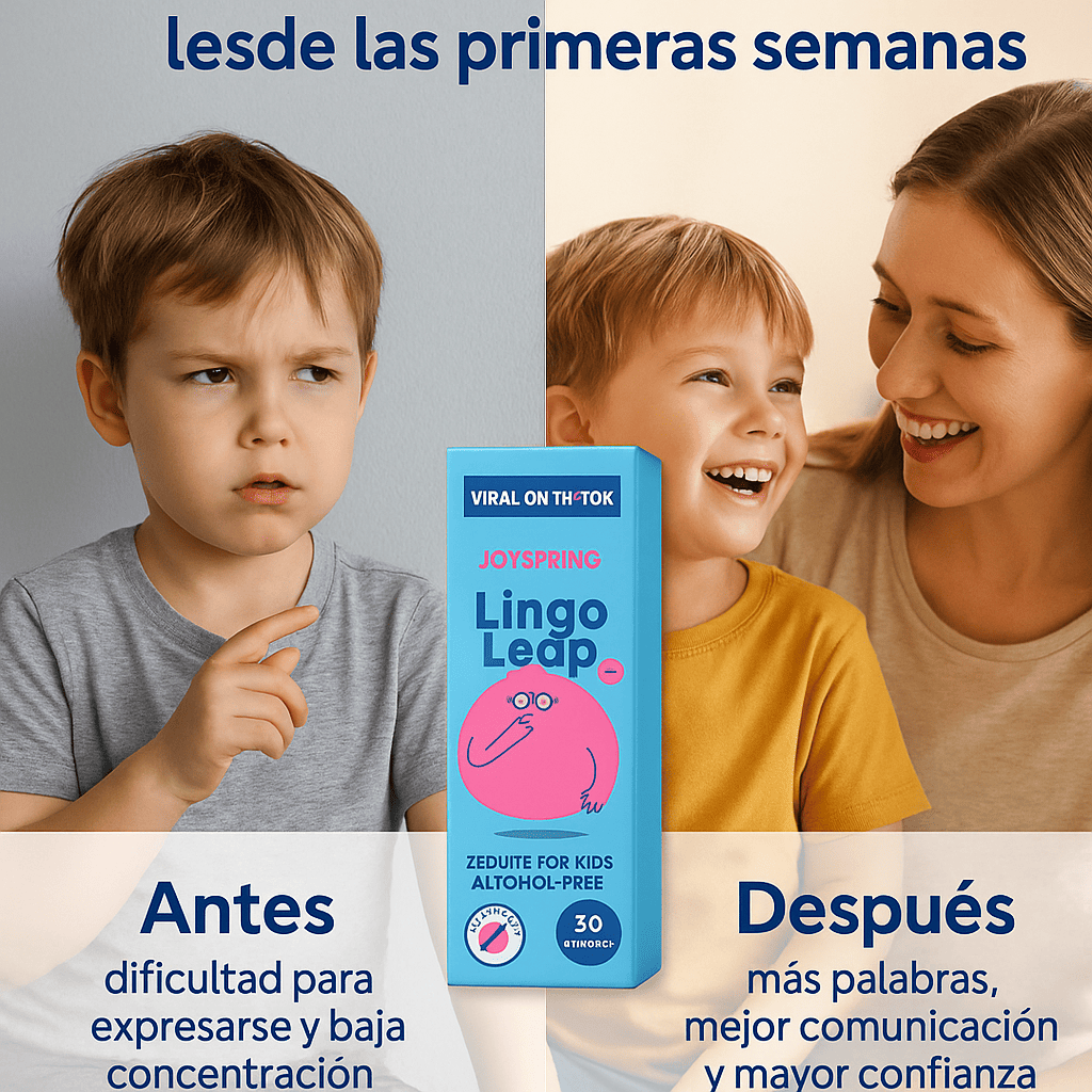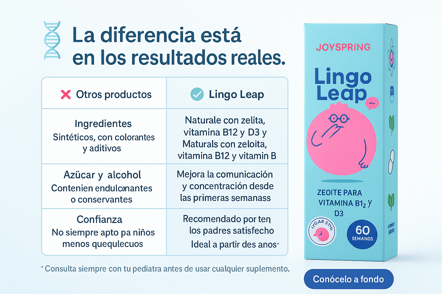 NeuroLingo es un suplemento natural infantil formulado para apoyar el desarrollo del lenguaje, la concentración y la comunicación en niños.